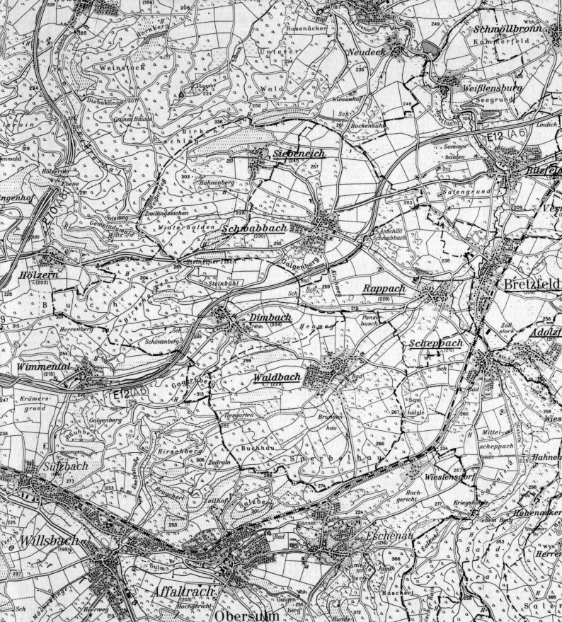 Dimbach Area Map. The German Congregational Church is located just southwest of Dimbach in the town of Waldbach.