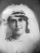 a) Rosa REICHERT ROLL on her wedding day. b) Rosa in the farmyard with geese.