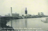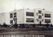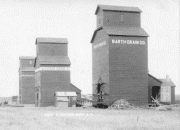 a) The first Mott elevators. Elevator reads: Barth Grain Company. b) 1910 - On the Cannon Ball River: 4 of 7 elevators, flour Mill and light plant; c) 1921 - MOTT High School