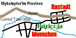 When I traveled to Rastadt earlier this year (1999), I went to the eastern end of town, past some old buildings which I understood to be an old mill, and reached the end of town, as it seemed. The Tschichikleya River swings to the north upstream at this point, and in the distance, 1-2 km away, is Gradolka. I understood Muenchen to be right there at the eastern end of Rastadt, but I could not identify it. I understand it was a small place, as the residents came to Rastadt for church since they did not have their own.
