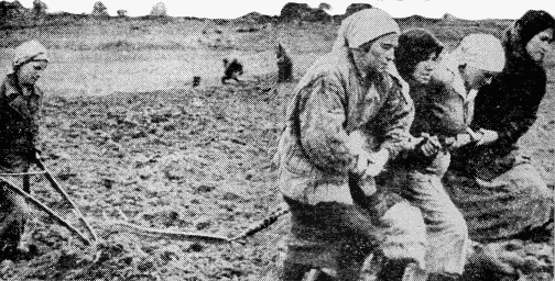 FOUR GERMAN-RUSSIAN WOMEN PULLING A PLOW IN SIBERIA, RUSSIA.