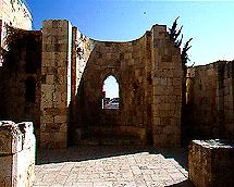The complex was built in Jerusalem in the 1100's by the Order of the Teutonic Knights. The church was dedicated to Mary, mother of Jesus, and the other buildings included a guesthouse and a hospital. To the right is a road leading to the German hospital, and the road itself is called the "Street of the Germans." The building was excavated and renovated in the 1970s.