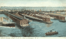 a) Early 1900's - North German Lloyd Piers at Hoboken, NJ, USA. b) 1880 - Odessa, South Russia port.