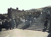 Late 1800's - An Oldsmobile climbing famous steps in Odessa, South Russia. 193 steps; 30% grade.