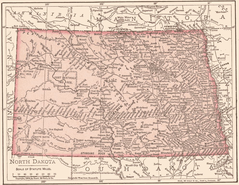 Notice that Mott, North Dakota is not on the map because it was founded in 1907, three years after this map was printed. Mott is located 34 miles straight south of Richardton on the north side of the Cannon Ball River. This is what the landscape looked like when the George ROLL (1867-1938) and Julia (STROH) ROLL