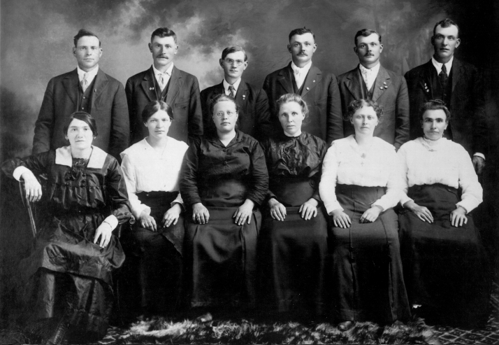 Back Row: Frank Martin PFAU (1886-1956), Joseph SCHAFF (1887-), Carl "Ralph" SCHAFF (1885-1981), Hieronymus "Rollie" SCHAFF (1881-1934), Frank SCHAFF (1881-1954), Michael SCHAFF (1880-1945)
